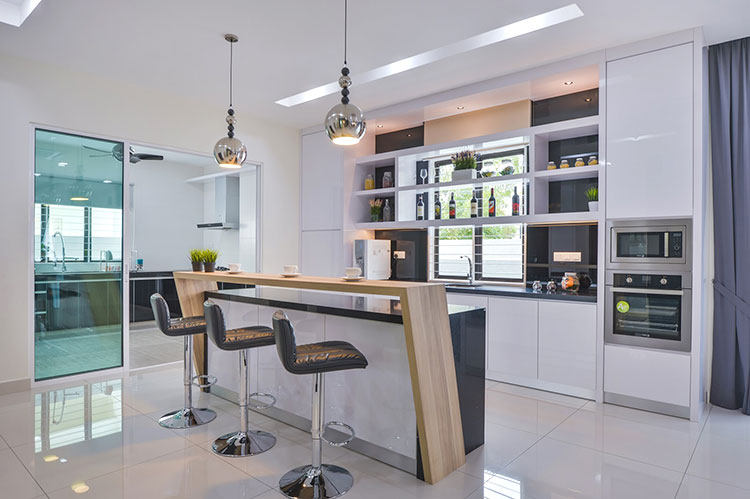 Gỗ Acrylic và Forrmica được kết hợp sử dụng cho không gian đẹp.